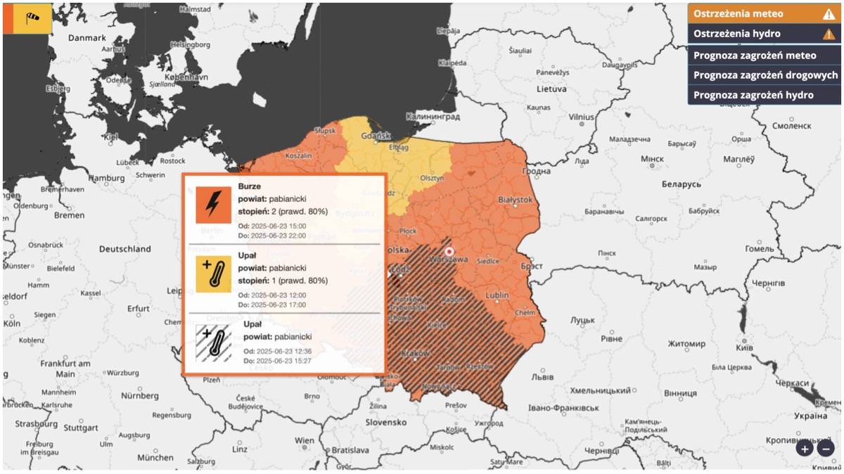Alert burzowy został określony na wysoki 80-procentowy poziom prawdopodobieństwa.