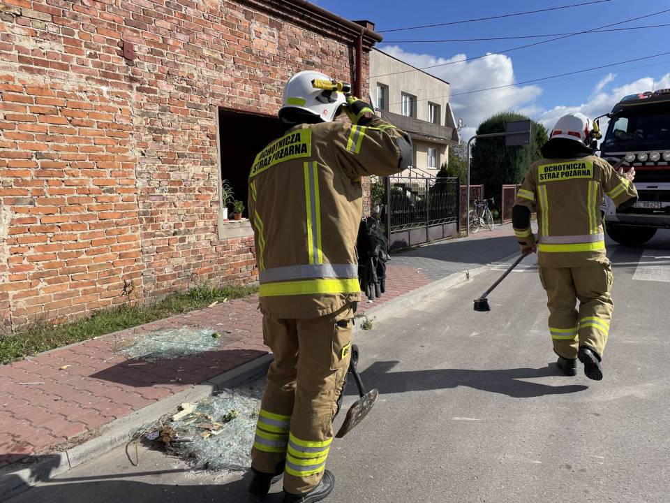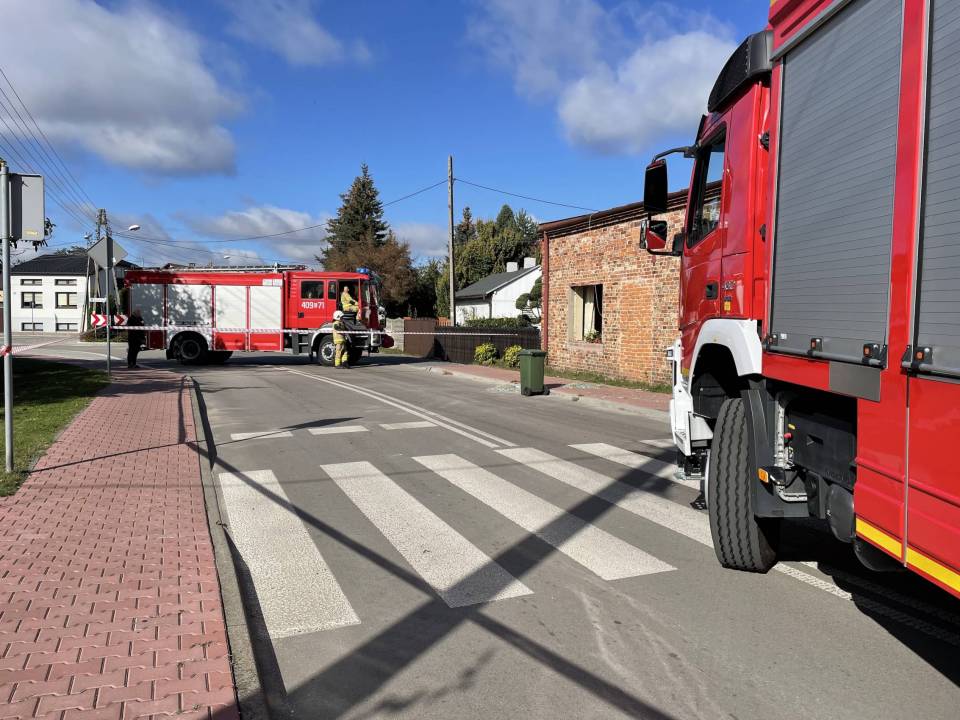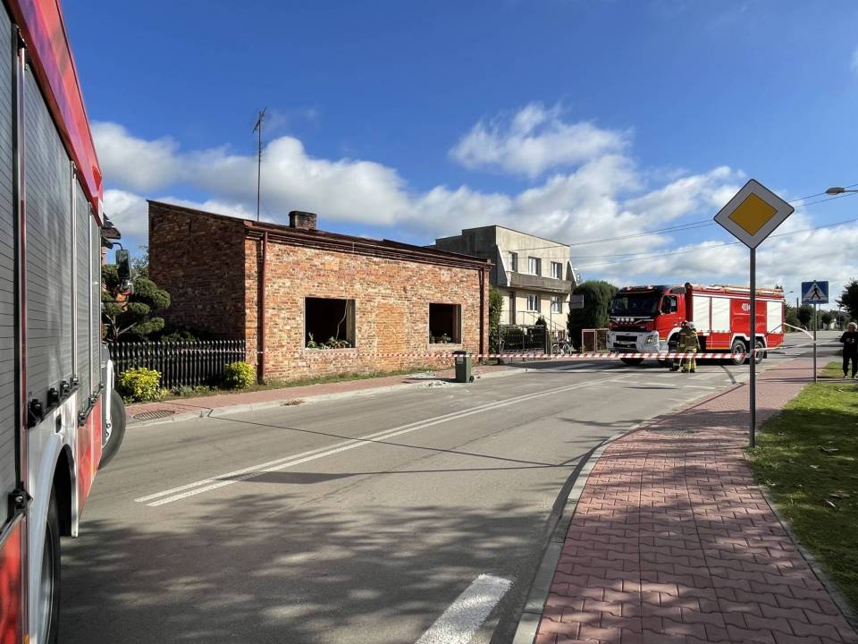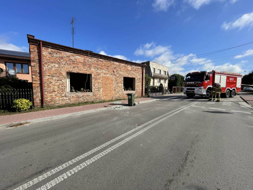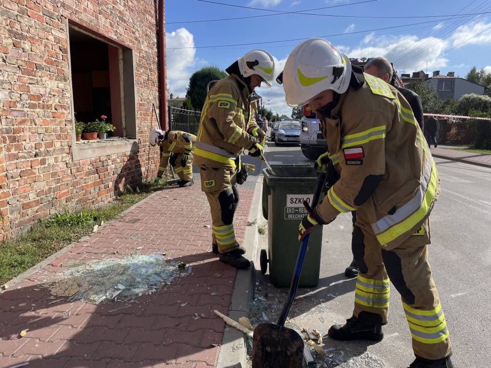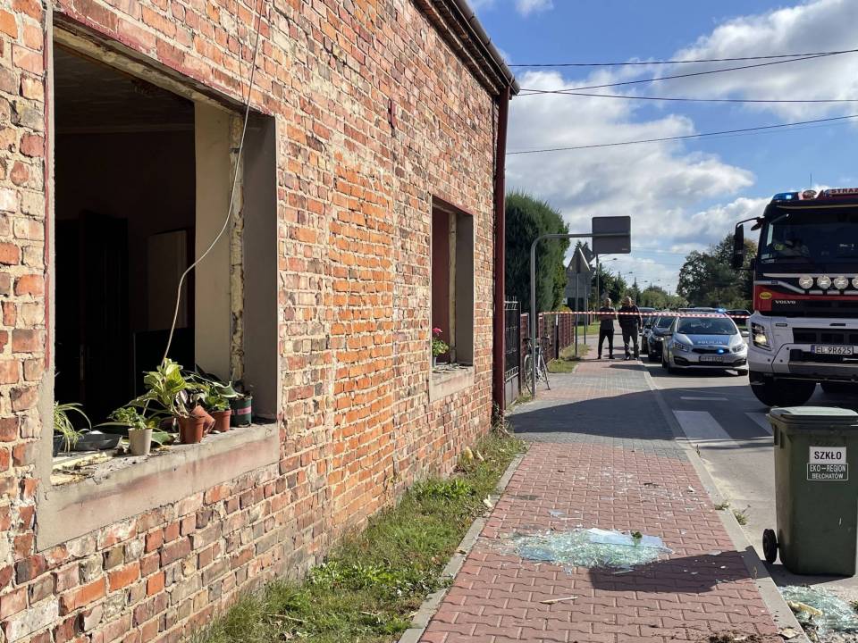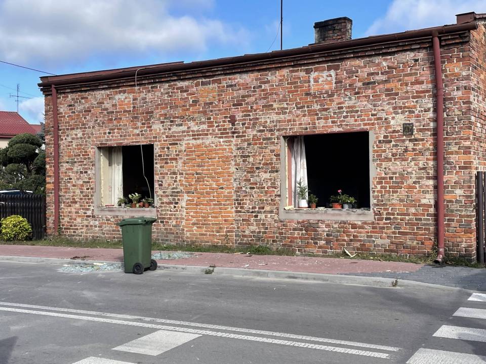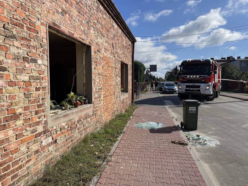 Eksplozja gazu w domu jednorodzinnym. Wybuch wyrzucił okna z futryn. W budynku były trzy osoby, na miejscu strażacy, policja i inspektor budowlany [Foto]