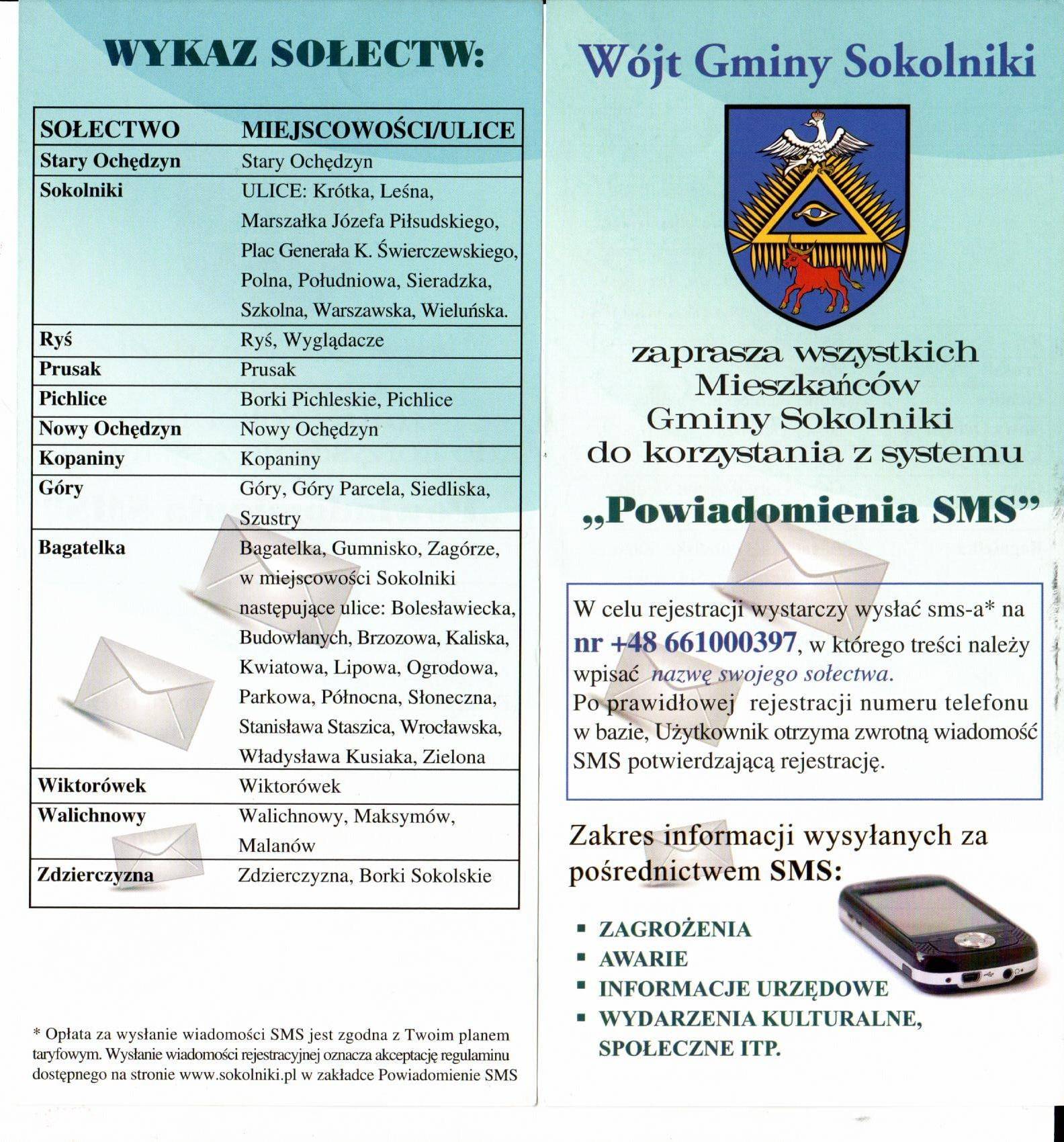 Posiadasz system powiadomień SMS obsługiwany przez UG w Sokolnikach? Jeszcze nie? Zarejestruj się w naszej bazie i bądź na bieżąco ze sprawami, które mają miejsce w Twojej gminie.