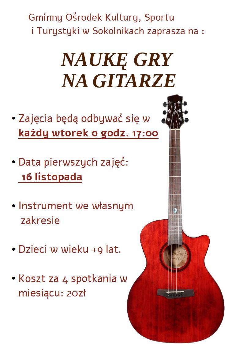 Gminny Ośrodek Kultury, Sportu i Turystyki w Sokolnikach zaprasza na lekcje nauki gry na gitarze.