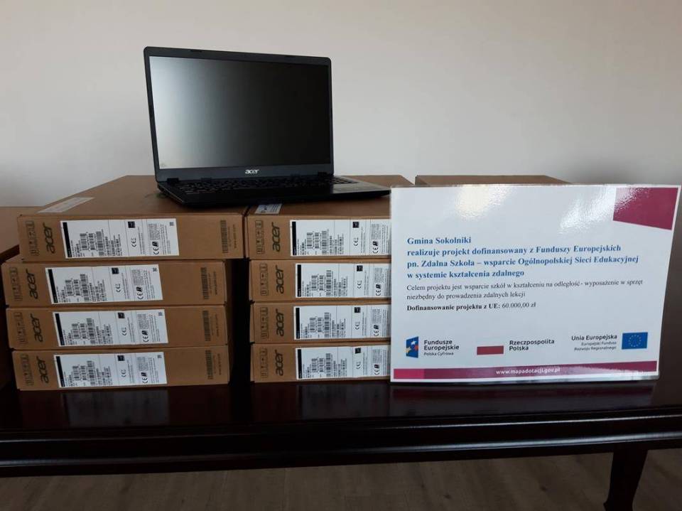| Laptopy zakupione w ramach projektu grantowego „Zdalna Szkoła – wsparcie Ogólnopolskiej Sieci Edukacyjnej w systemie kształcenia zdalnego" Programu Operacyjnego Polska Cyfrowa na lata 2014 – 2020 realizowanego z Funduszy Europejskich zostały przekazane do szkół, dla których organem prowadzącym jest Gmina Sokolniki. |