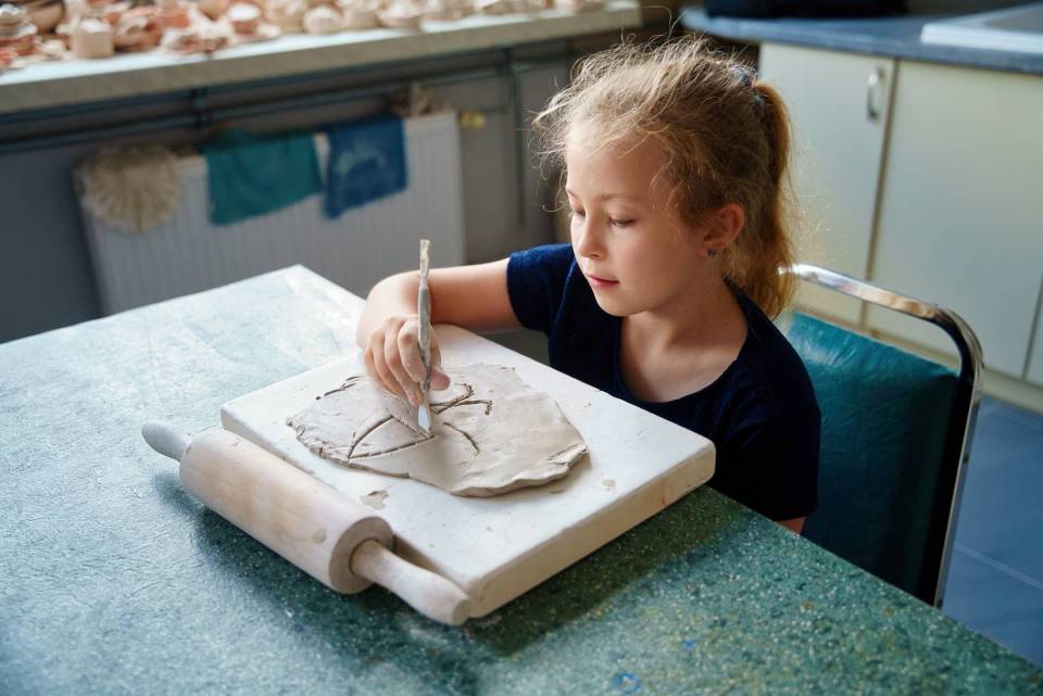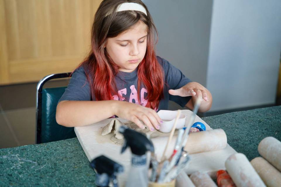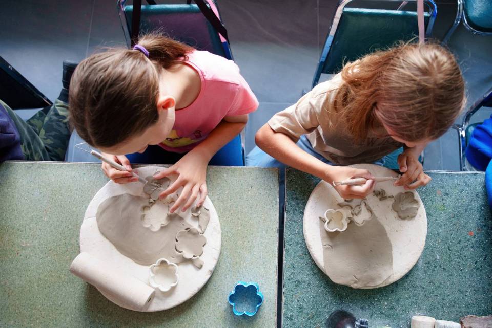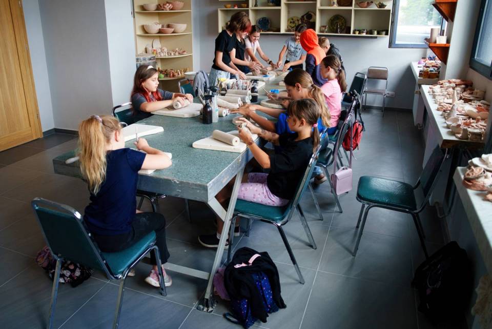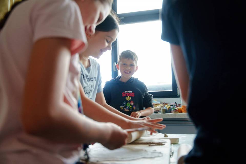 Na zdjęciach: dzieci podczas pierwszych wakacyjnych warsztatów garncarskich i teatralnych w Centrum Kultury i Sztuki w Skierniewicach.