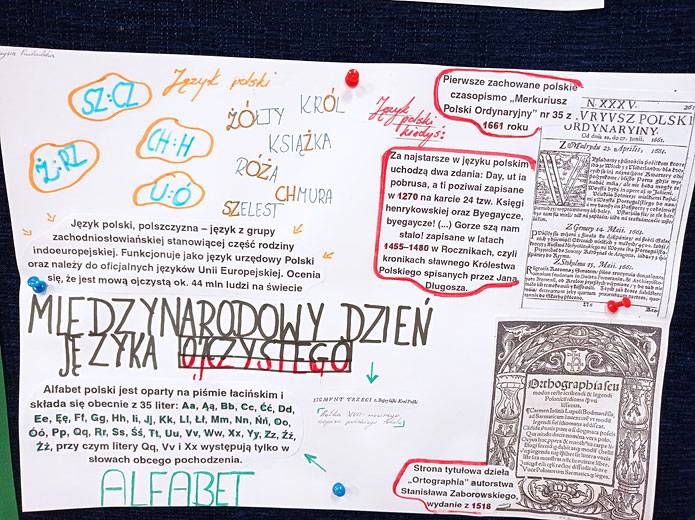 Dla uczczenia święta języka polskiego uczniowie klas IV – VIII w Szkole Podstawowej w Pieczyskach wzięli udział w szkolnym konkursie promującym znajomość języka w mowie i piśmie. Uczniowie przygotowali plakaty przedstawiające przykłady najczęściej popełnianych błędów, hasła promujące język ojczysty, zasady ortograficzne oraz wzmianki historyczne o języku polskim.