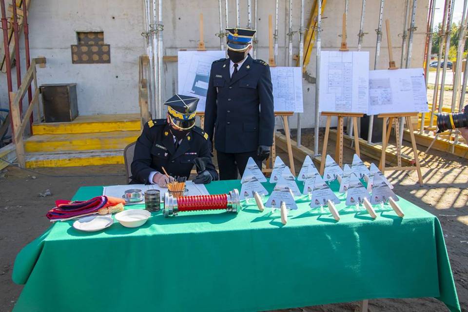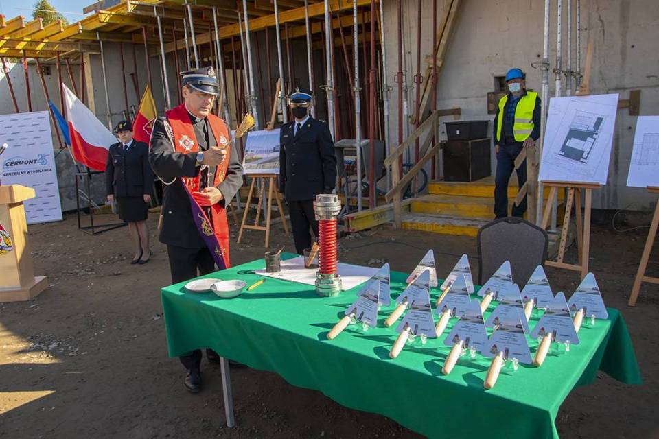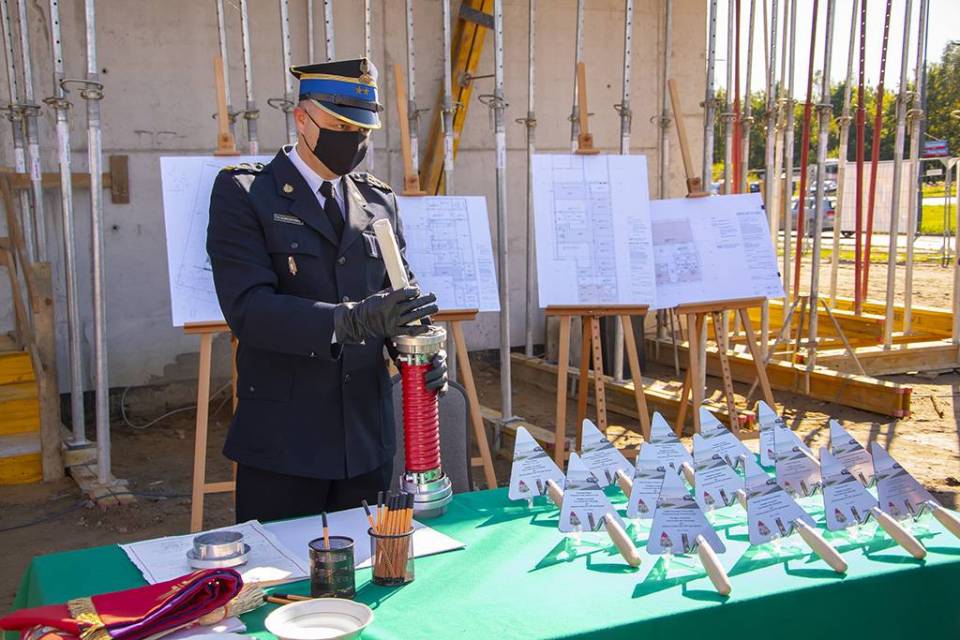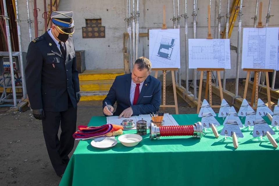 W uroczystości podpisania i wmurowania aktu erekcyjnego wzięli udział strażacy oraz przedstawiciele władz samorządowych.