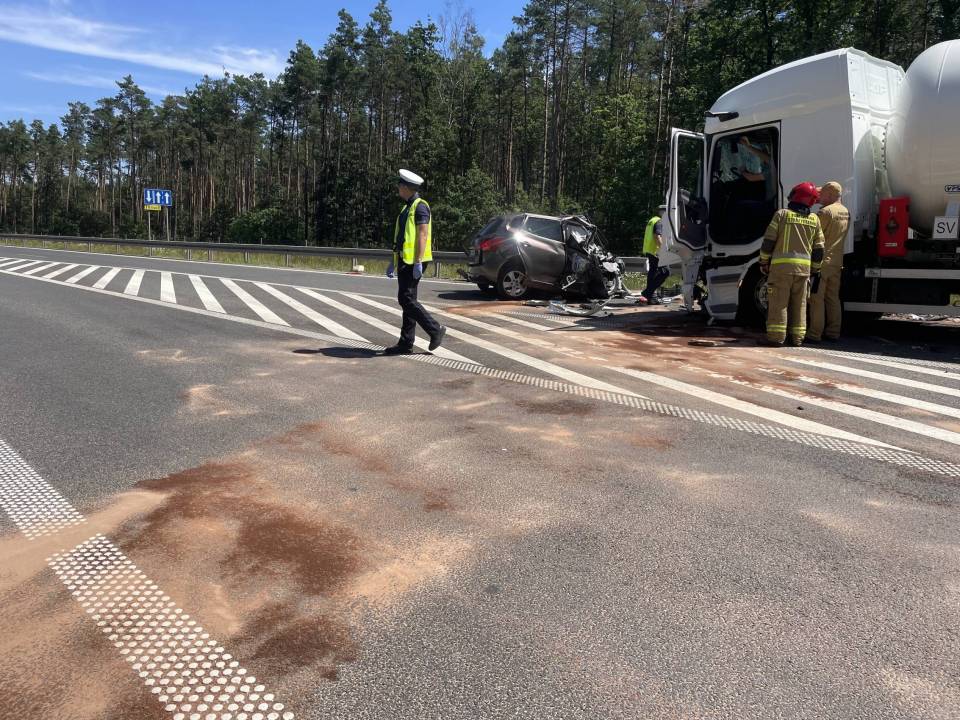 Do zdarzenia doszło w poniedziałek, 30 czerwca tuż przed godziną 10.00 rano. Wstępnie wszystko wskazuje na to, że kierujący samochodem osobowym Kia, zjechał na przeciwległy pas ruchu, wówczas doszło do czołowego zderzenia z ciągnikiem siodłowym przewożącym ładunek gazu.