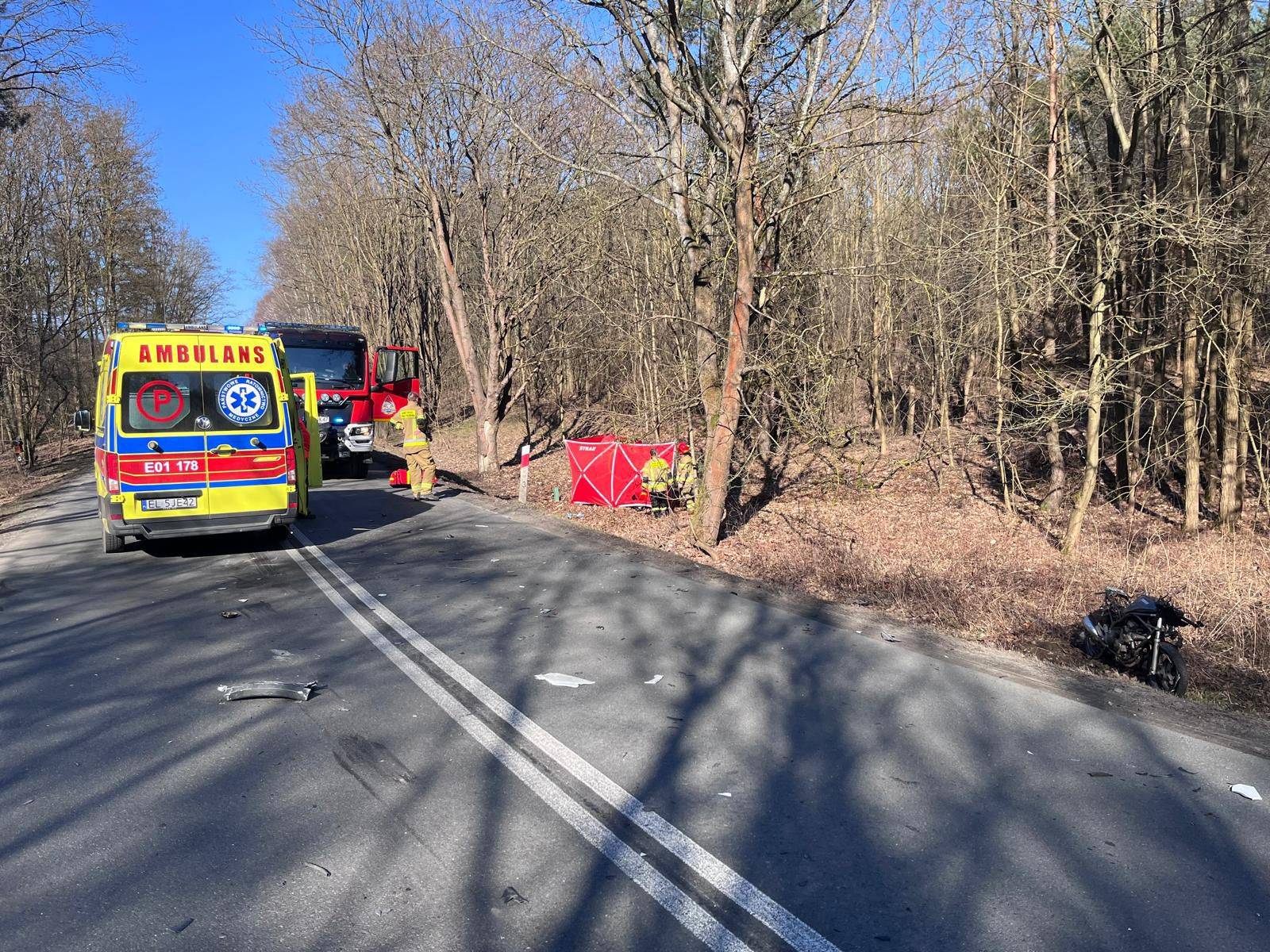 Śmiertelny wypadek w gminie Burzenin. Zginął motocyklista, droga wojewódzka zablokowana [Foto]