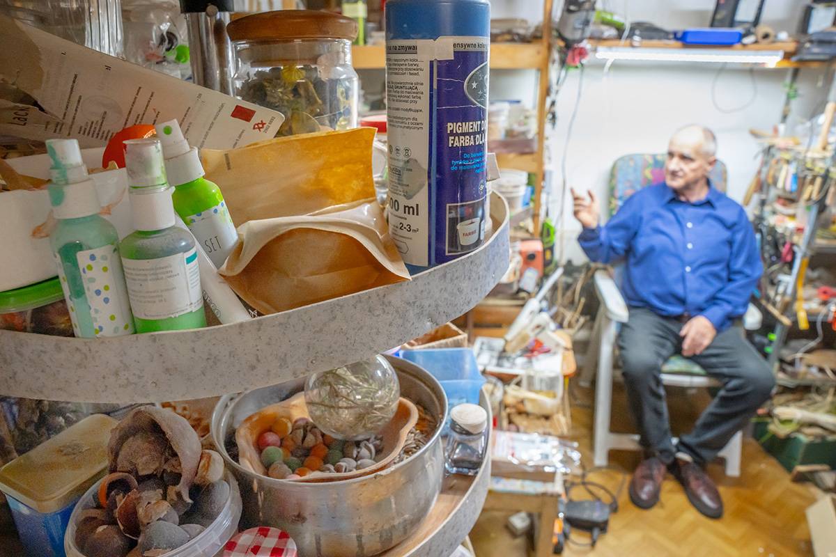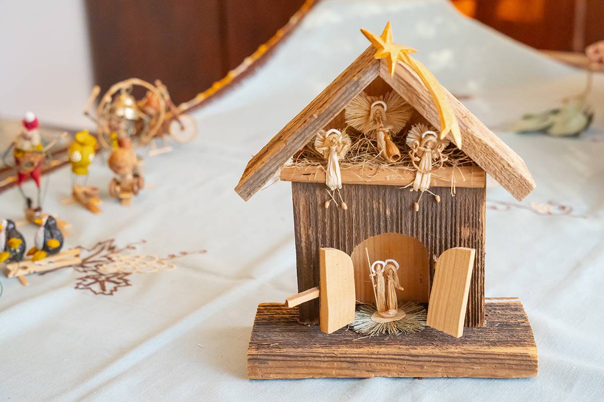 Przed świętami Bożego Narodzenia w pracowni pana Mariusza dominują szopki i anioły. Te najmniejsze są wielkości paznokcia, ale artysta pamięta o najdrobniejszym szczególe. Każda szopka i postać jest inna, każda ozdoba jest niepowtarzalna.