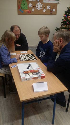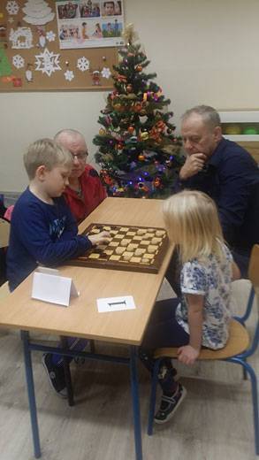 9 grudnia po raz pierwszy w naszej szkole odbyły się rozgrywki gry w warcaby wśród uczniów klasy I wraz z rodzicami. Turniej był spotkaniem uczniów uczących się gry w warcaby na zajęciach pozalekcyjnych w ramach innowacji pedagogicznych. Drużynę tworzyli: dziecko i rodzic. Na rozgrywki odważnie stawili się sami ojcowie. Odbyły się cztery rundy pod czujnym okiem wychowawczyni Elwiry Szewczyk.