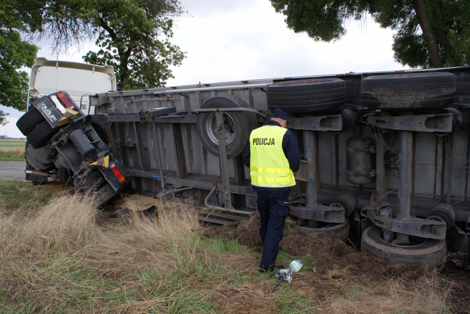 Do tej kolizji drogowej doszło 10 września 2019 roku przed godziną 10:00 na ulicy Wieluńskiej w Dzietrzkowicach. Z ustaleń policjantów wynika, że pęknięcie opony w naczepie samochodu ciężarowego marki Daf było przyczyną wywrócenia się naczepy na jezdnię. W wyniku kolizji z naczepy wysypało się kilkanaście ton zboża. Kierujący tym zespołem pojazdów, 21 – letni mężczyzna w chwili zdarzenia był trzeźwy.